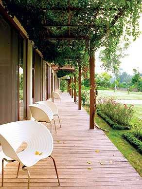 Công trình cách xa lộ lớn, lui vào dưới những tàng cây và thưa dần những nếp nhà… Tương đối biệt lập, hoà vào với thiên nhiên.
