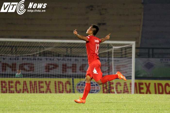 | Trần Duy Khánh ăn mừng bàn thắng nâng tỉ số lên 3-0 cho B.Bình Dương (ảnh: Hoàng Tùng) |