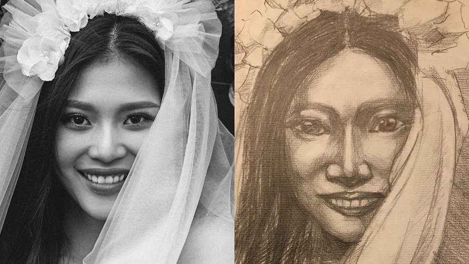 Trên trang cá nhân, Jay Quân thu hút sự chú ý của cộng đồng mạng khi đăng tải bức ảnh tặng vợ cực đáng yêu. "Tập tành vẽ chân dung tặng người yêu và cái kết ám ảnh" - anh viết. Cụ thể, tấm ảnh gốc là chân dung Chúng Huyền Thanh mặc đồ cô dâu rất xinh đẹp, rạng rỡ. Tuy nhiên, khi qua nét cọ của chồng, cô như biến thành một "thảm hoạ" nhan sắc.
