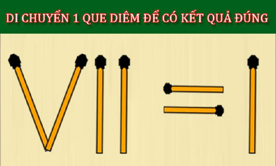 Liệu bạn có đủ tinh tế nhận ra cách di chuyển 1 que diêm duy nhất để phép tính VII = I trở nên đúng?