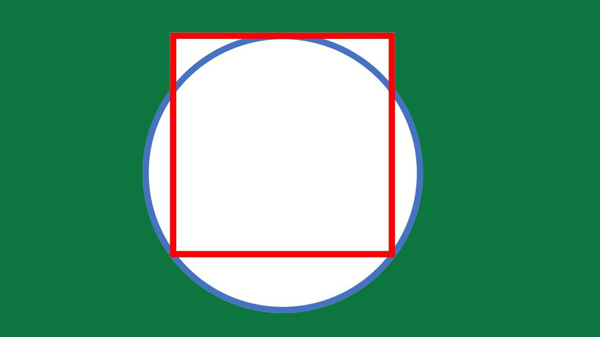 Cho một hình vuông và một hình tròn xếp chồng lên nhau như trong ảnh. Theo bạn, hình nào lớn hơn? Hãy chứng minh điều đó.