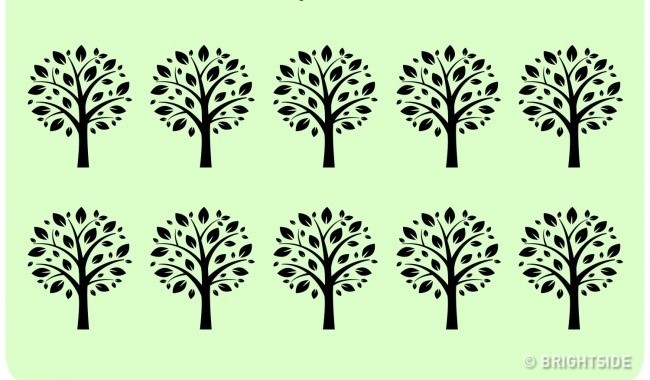 Đố bạn xếp 10 cây xanh dưới đây thành 5 hàng mà mỗi hàng có 4 cây