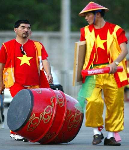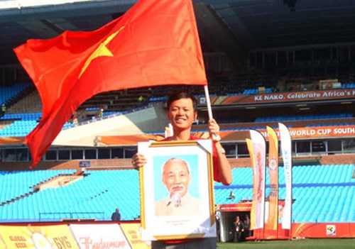 | Hoàn "say" đi cổ động trong mùa World Cup 2010. |