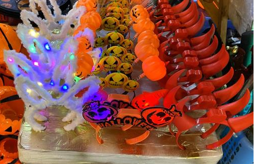 Các đồ trang trí như đèn bí ngô có giá khoảng 30.000 – 100.000 đồng/chiếc tùy kích thước; các loại kiếm, gậy nhựa có giá từ 40.000 – 100.000 đồng/chiếc... Rẻ hơn thì có các loại bờm với giá từ 20.000 – 50.000 đồng/chiếc.