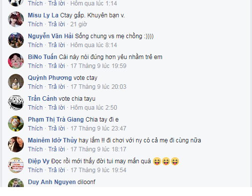 Tuy nhiên, điều mà cô gái trong câu chuyện trên muốn nhận được từ cư dân mạng là làm thế nào để có được buổi hẹn như ý chứ không phải là “có nên chia tay với người yêu hay không”. Vì thế, hẳn là cô sẽ rối lắm khi đọc được các comment dưới bài viết của mình.