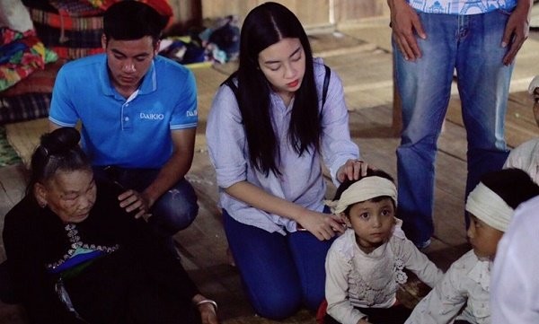 Hoa hậu Đỗ Mỹ Linh động viên các gia đình.