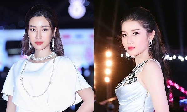 Khác biệt với phong cách cá tính của đêm thi trước, đương kim Hoa hậu Việt Nam Đỗ Mỹ Linh diện bộ váy trắng tinh khôi cùng trang sức ngọc trai đắt tiền.