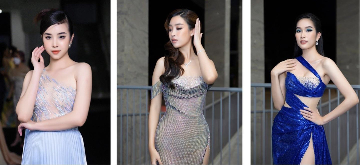 Á hậu Phương Anh cũng diện váy sequin tông màu xanh lấp lánh.