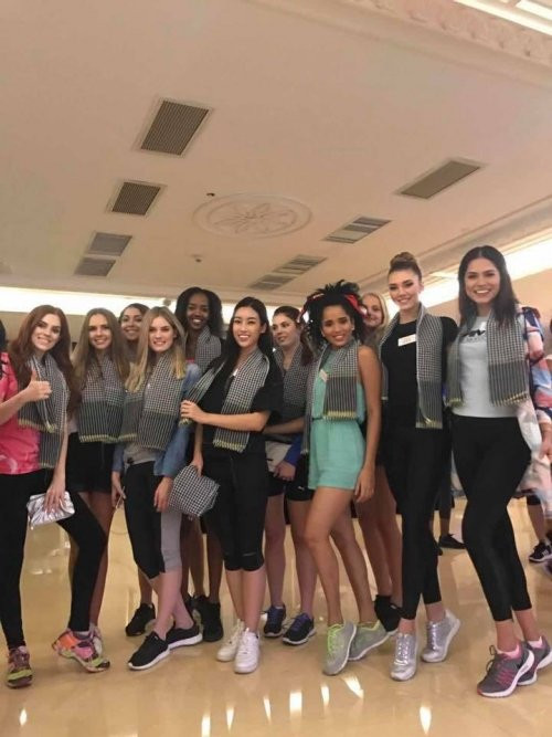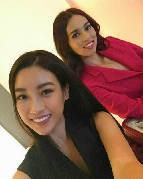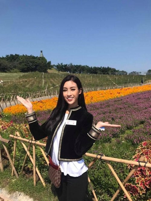 Là một trong những thí sinh có mặt sớm nhất tại Trung Quốc, Hoa hậu Việt Nam 2016 đủ thời gian chuẩn bị cho những hoạt động đầu tiên của cuộc thi. Đỗ Mỹ Linh rạng rỡ chụp ảnh cùng đại diện đến từ Philippines, cũng là bạn cùng phòng của cô.
