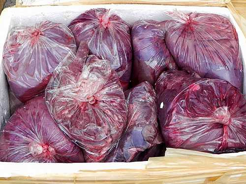 Thật khó để tưởng tượng, nhưng đối với một số nhà xe chạy tuyến Bắc - Nam hiện nay, “hành khách” yêu thích của họ là các loại thực phẩm, gồm: nội tạng gia súc, chân gà, móng lợn, đuôi bò… thối.Sẽ ra sao nếu như số thịt thối này lọt vào các quán ăn, nhà hàng và người tiêu dùng sẽ ăn mà không hay biết gì? - Ảnh: Nguyễn Phúc