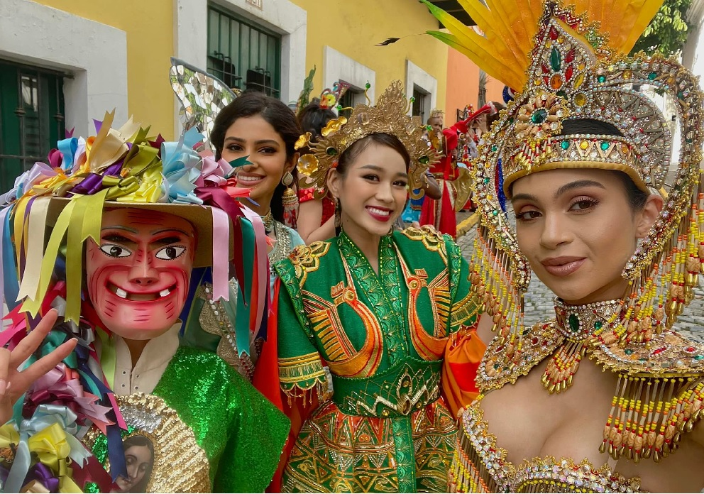 Ngày 28/11, Hoa hậu Đỗ Thị Hà và các thí sinh Miss World ghi hình trên đường phố Puerto Rico để chuẩn bị cho phần thi Dances of the World sẽ phát sóng trong đêm chung kết.