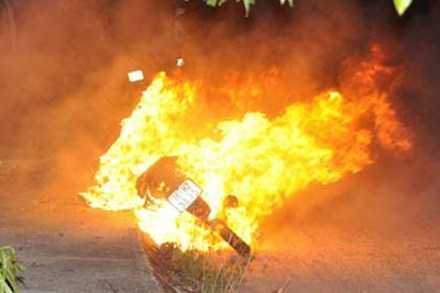 07/10/2013 01:30:00 +07:00Khi thấy lửa bốc cháy, thanh niên này lại cởi quần áo dập lửa và đưa người yêu đi cấp cứu.