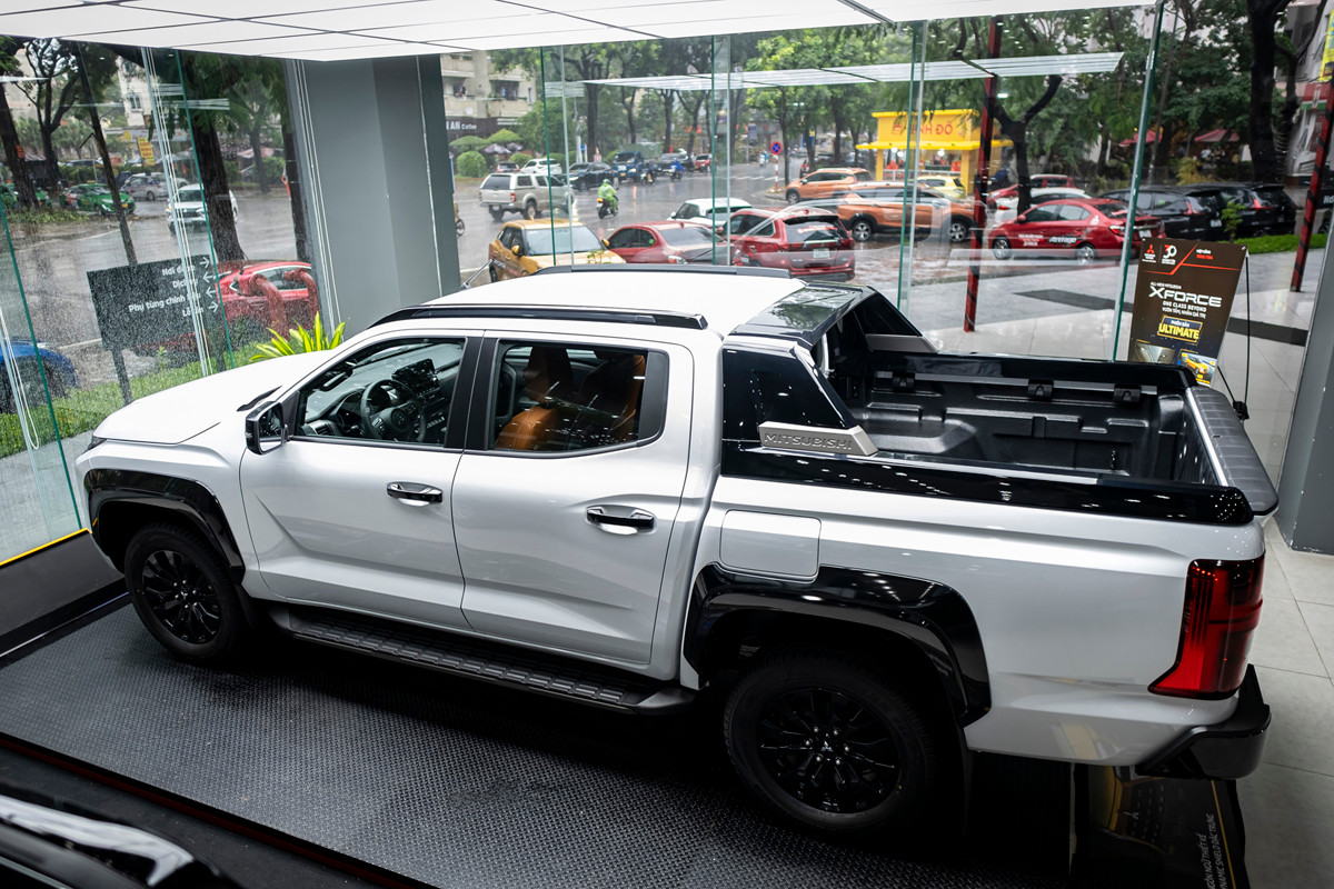 Mitsubishi Triton 2024 có thiết kế đuôi xe cứng cáp hơn đi kèm vai thể thao nhưng lại không có bệ đỡ lên thùng như Ford Ranger.