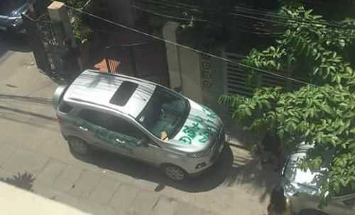 Sự việc bắt đầu khi người dùng mạng xã hội lan truyền những hình ảnh ghi lại cảnh một người phụ nữ dùng bình sơn xịt lên chiếc Ford Ecosport chắn 2/3 cửa nhà. Sơn được phun ở phần nắp ca-pô và bên hông xe.
