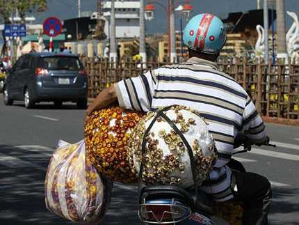 | Đi bộ cũng ráng 2 tay 2 chậu |