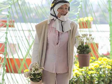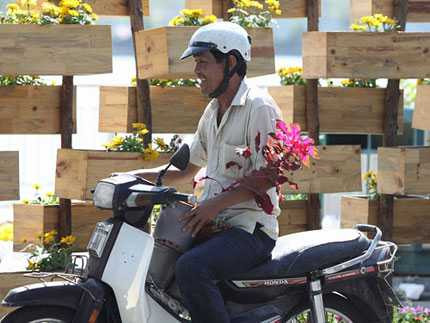| Cụ già này cũng không bỏ qua dịp lấy hoa |