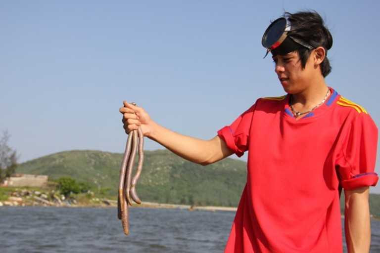 Vú nàng (một loài hải sâm), đẻn (rắn biển) và trùn biển được người dân Quảng Ngãi xem là “thần dược của phái mạnh” nên đổ xô đi lùng để bán cho các "đại gia".