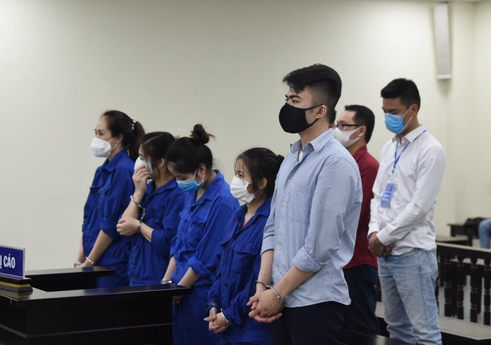Các bị cáo hầu tòa tội “Lừa đảo chiếm đoạt tài sản” gồm Phạm Hương Liên (SN 2000, quê Phú Thọ), Dương Mai Nam (SN 2001, quê Phú Thọ), Mai Thị Hằng (SN 1978, mẹ Nam), Mai Hương (SN 1980, mẹ Liên), Đỗ Thanh Tùng (SN 1990, ở huyện Ba Vì, Hà Nội), Nguyễn Tiến Đạt (SN 1991, ở quận Long Biên, Hà Nội) và Nguyễn Tuấn Thành (SN 2001, ở TP Sơn La).
