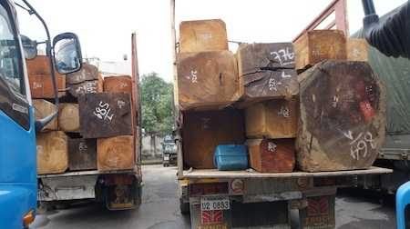 | Hình ảnh về đoàn xe chở gỗ quá tải |