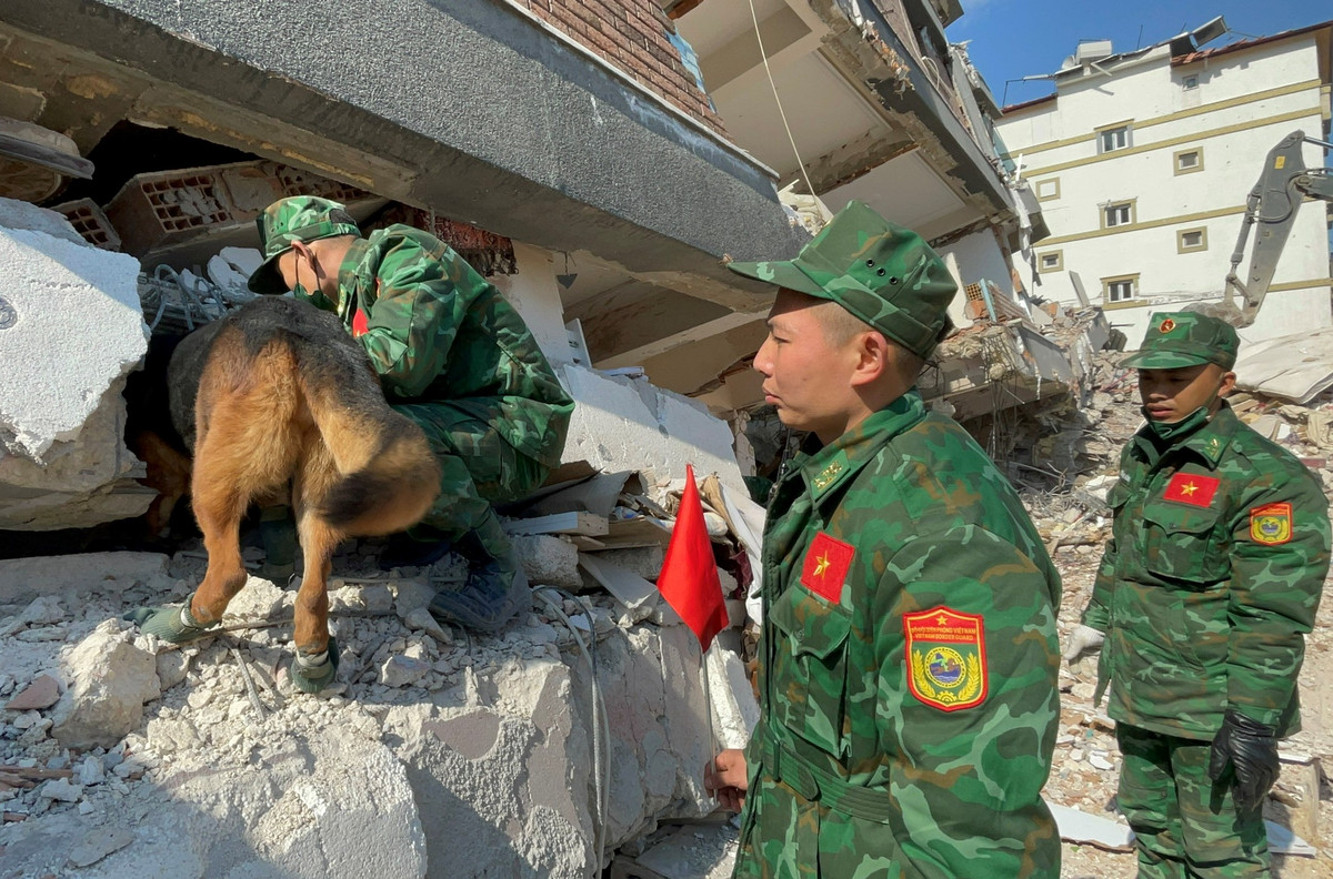 Theo hiệp đồng với cơ quan điều phối địa phương, từ sáng 16/2 (giờ địa phương), lực lượng của Quân đội Nhân dân Việt Nam (QĐND) triển khai đội chó cứu hộ và đội công binh cứu sập tiếp tục tìm kiếm tại xã Haci Omer Alpagot thuộc Antakya, thủ phủ tỉnh Hatay.
