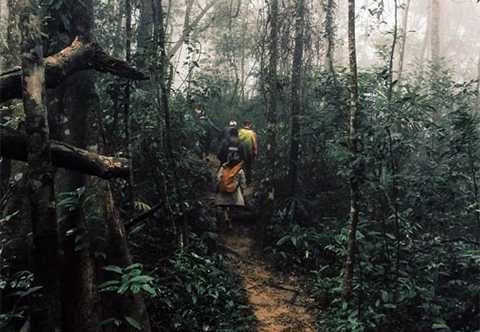 | Đoàn công tác kiểm tra rừng tại bản Đoòng. |