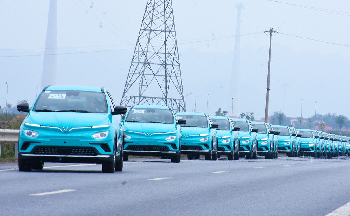 Ngày 23/3, khoảng 50 xe taxi điện VinFast VF e34 xuất phát từ nhà máy ô tô VinFast Hải Phòng (huyện đảo Cát Hải, Hải Phòng) di chuyển về Hà Nội.