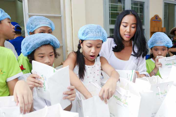 Chuẩn bị kĩ lưỡng từng suất ăn giàu dinh dưỡng, và các phần quà kèm theo, ca sĩ Đoan Trang đã tận tay trao cho những đối tượng được nhận. Dù khá bận rộn với vai trò giám khảo Bước hảy hoàn vũ nhí nhưng Đoan Trang đã dành suốt một buổi chiều để tham gia cùng chương trình.
