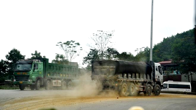 Xe tải ra vào mỏ đất liên tục suốt ngày đêm, sau đó di chuyển ra đường mòn Hồ Chí Minh để đưa đất đi san lấp. Hầu hết những chiếc xe như thế này đều có dấu hiệu quá tải, cơi nới thành thùng.