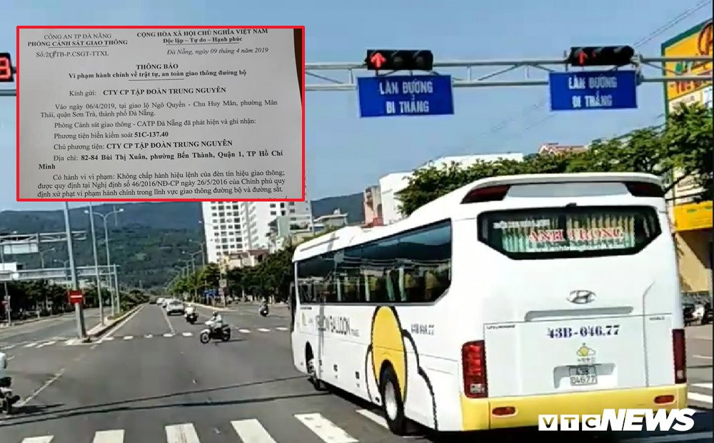 Ngày 10/4, Phòng CSGT Công an TP. Đà Nẵng cho biết đã xử phạt 1,6 triệu đồng, tước giấy phép lái xe 2 tháng đối với tài xế xe khách BKS 43B-046.77 thuộc Công ty TNHH dịch vụ du lịch Anh Trọng (trụ sở tại Đà Nẵng), đồng thời ra “tối hậu thư” cho các tài xế trong đoàn xe của Công ty Cổ phần Tập đoàn Trung Nguyên (Công ty Trung Nguyên).