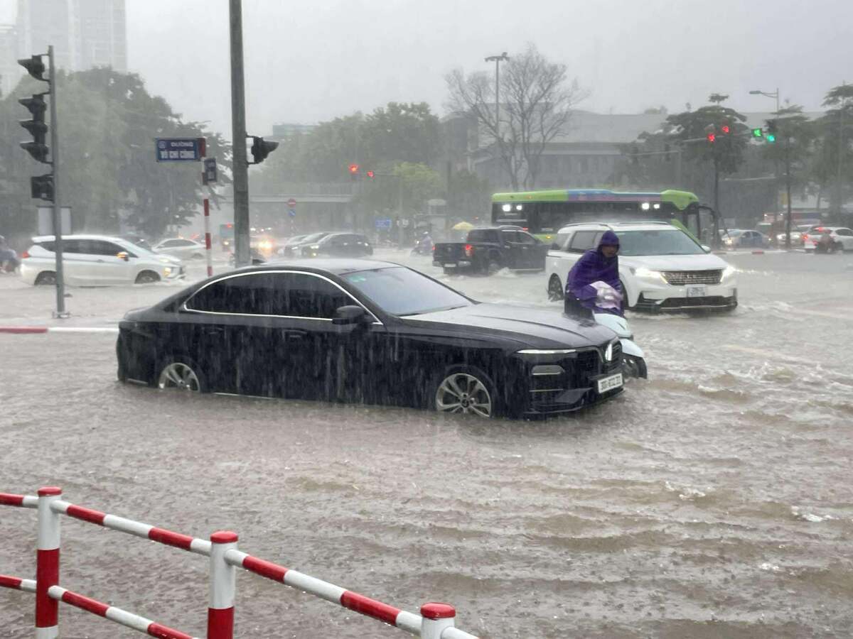 Hàng loạt ô tô chết máy sau trận ngập nặng ở Hà Nội ngày 30/9 do hoàn lưu bão Bualoi.