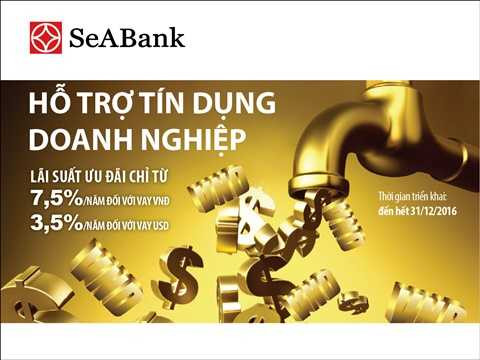 Cụ thể, từ nay đến hết 31/12/2016, SeABank áp dụng mức lãi suất cho vay ngắn hạn cho các doanh nghiệp xuất nhập khẩu chỉ từ 7%/năm đối với VND và 2,8%/năm đối với vay USD.