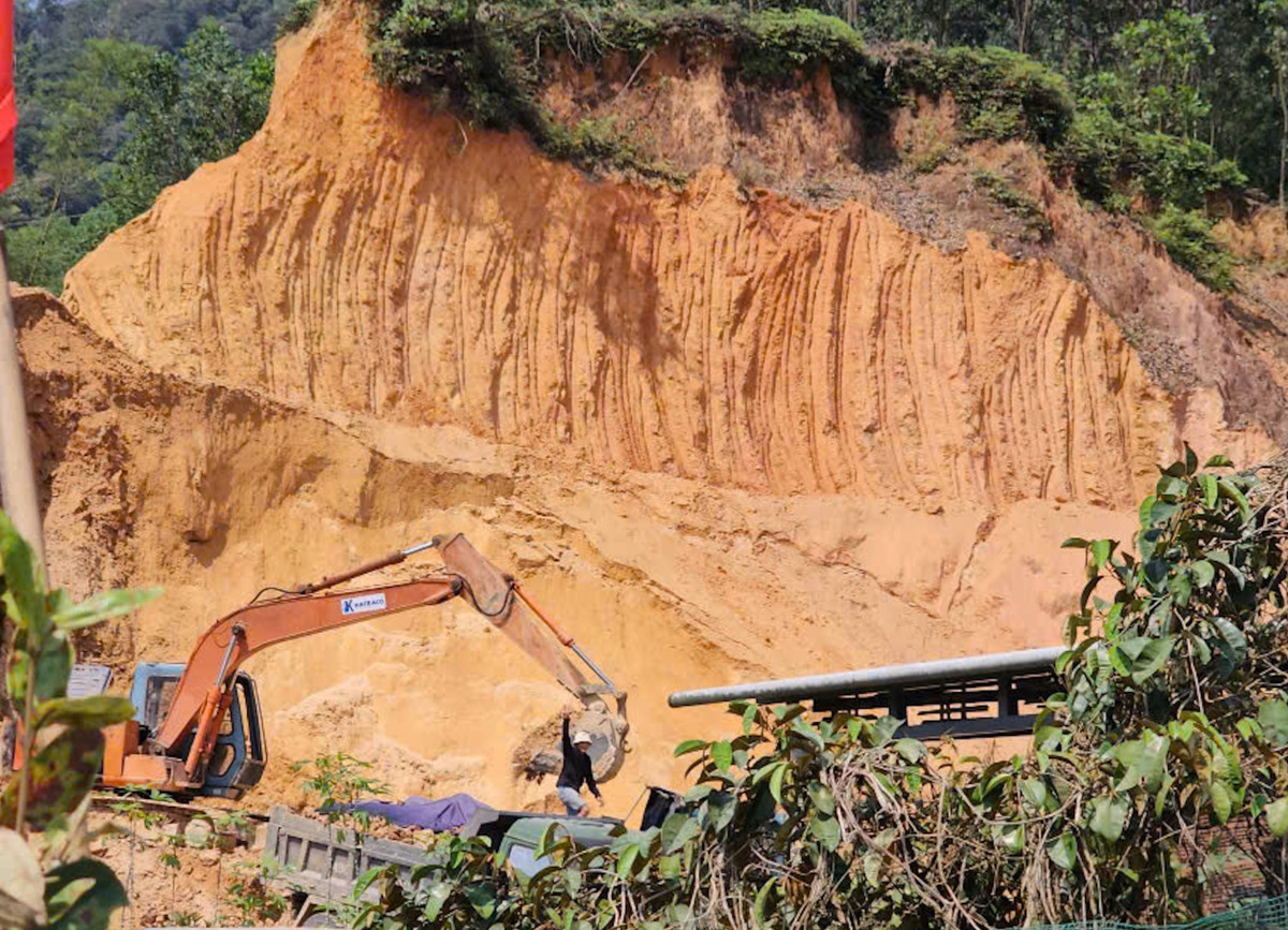 Quả đồi khác gần nhà ông Cao Minh Bay cũng bị đào xới lấy đi một lượng đất rất lớn. Theo dân địa phương, người lấy cũng là đơn vị thi công dự án đường liên xã Lâm Đớt - Đông Sơn (huyện A Lưới). Tuy nhiên, do đất tại vị trí này quá mềm nên đơn vị thi công chuyển hướng khai thác sang quả đồi nhà ông Bay.