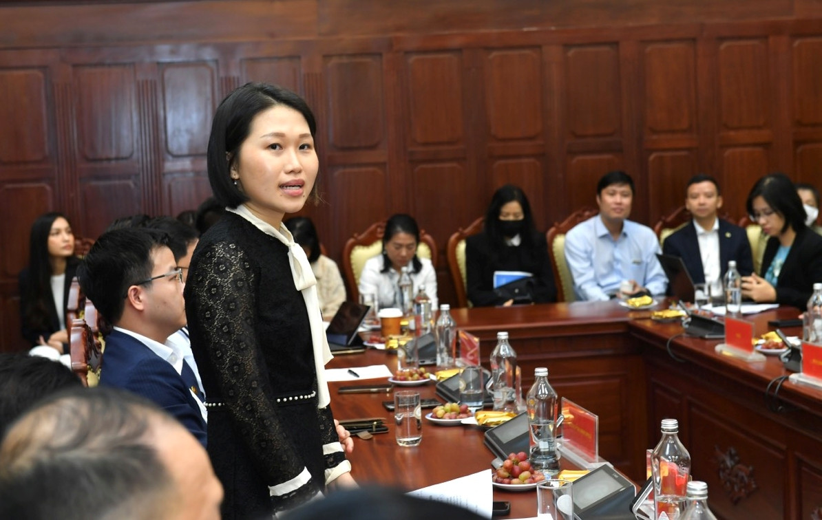 Bà Lê Thùy Linh, Phó Chủ tịch HĐQT Công ty Cổ phần Đầu tư IMG đóng góp ý yến tại hội nghị. (Ảnh: Đ.V)