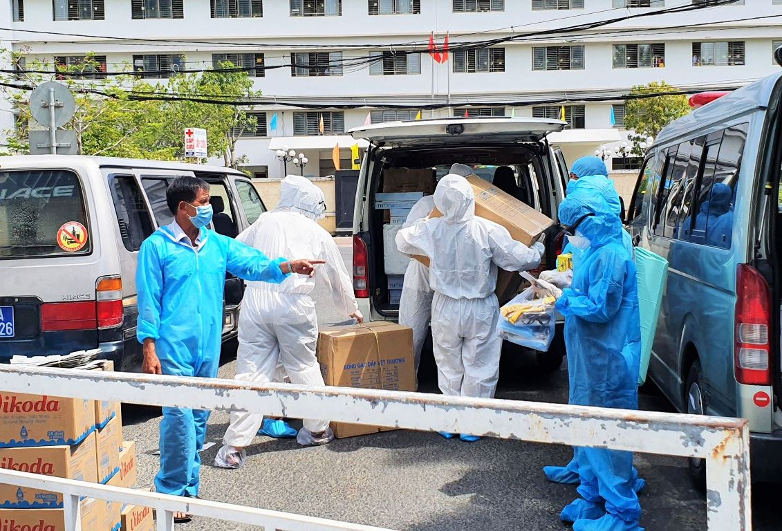 Hàng tiếp tế của các tổ chức, cá nhân hỗ trợ cho 3 bệnh viện tại Đà Nẵng phòng, chống dịch COVID-19.