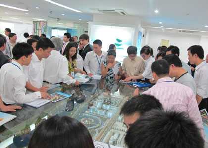 | Rất đông khách hàng đến siêu thị dự án xem dự án |