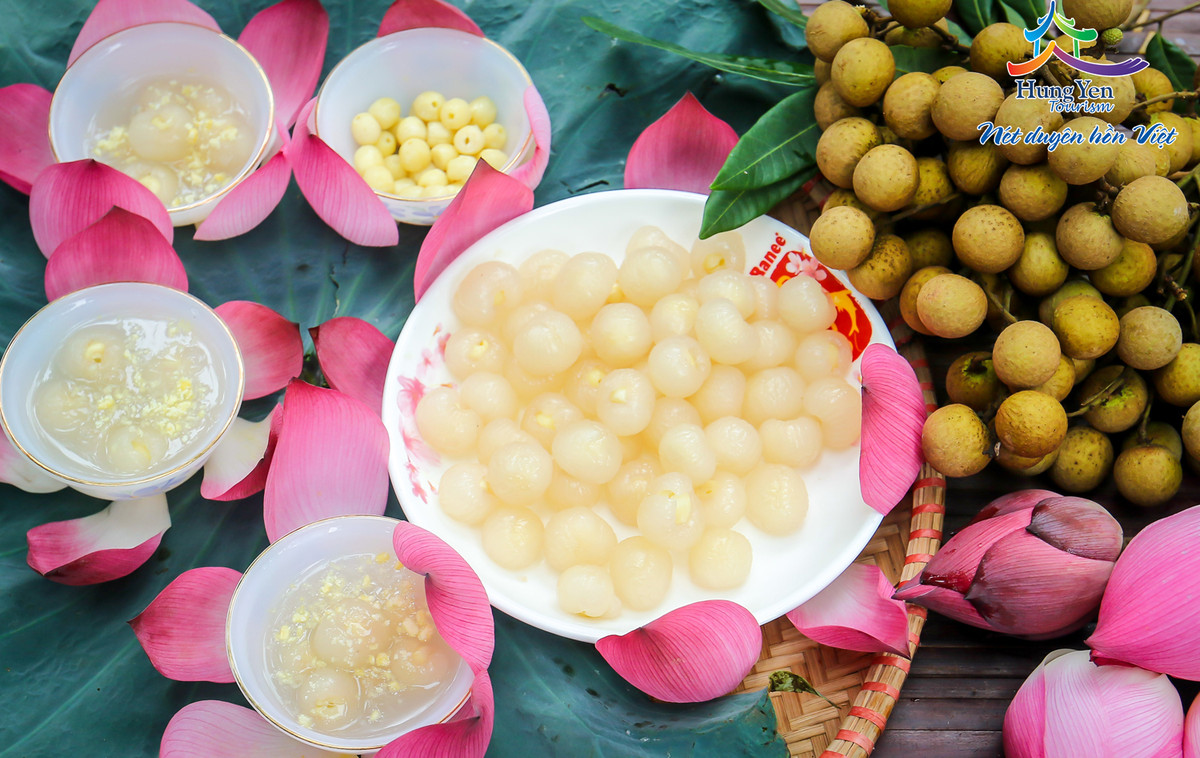 Hưng Yên là vùng đất nổi tiếng với nhiều món ẩm thực thơm ngon, độc đáo. Đầu tiên phải kể đến món chè sen long nhãn - món ăn đặc biệt được kết hợp giữa 2 sản vật nổi tiếng của vùng đất này đó là nhãn lồng, hạt sen. Món ngon này là sự kết hợp tinh túy giữa hương vị trời và đất, vị ngọt thơm của long nhãn quyện lẫn vị bùi của hạt sen, tạo thành hương vị riêng biệt.