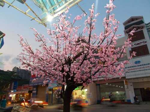 | Một cây đào giả được bày ngoài phố. |
