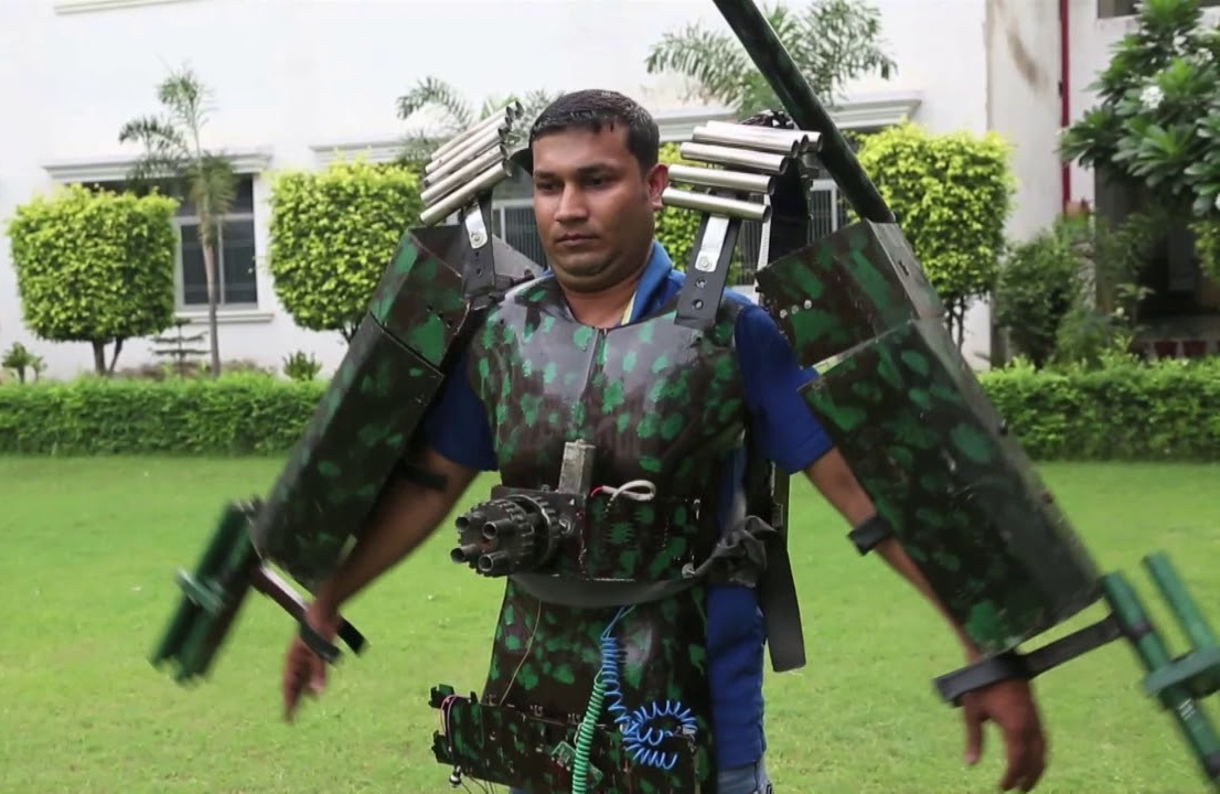 Độc đáo chiếc áo giáp Iron Man với súng điều khiển từ xa của người đàn ông Ấn Độ