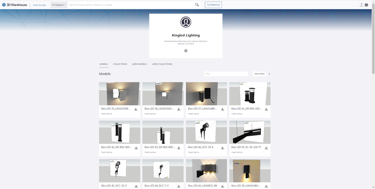 Công ty cổ phần công nghệ chiếu sáng ILIKE với thương hiệu Kingled vừa cho ra đời hệ thống thư viện 3D với đầy đủ các sản phẩn đèn chiếu sáng do công ty sản xuất (https://3dwarehouse.sketchup.com/user/u5a8e7561-fed4-486b-a421-12d72d746838/Kingled-Lighting).