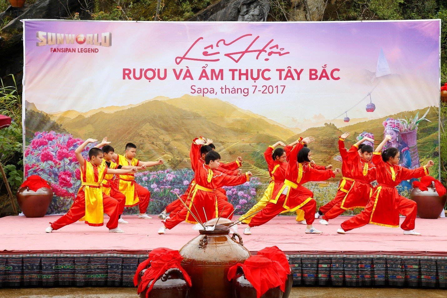 Sảng khoái với những món ngon và “say” trong các loại rượu, du khách tiếp tục “mãn nhãn” với các màn biểu diễn võ thuật “Hào Khí Fansipan” với sự thể hiện của các “võ sư nhí” tại sân khấu chính lễ hội.