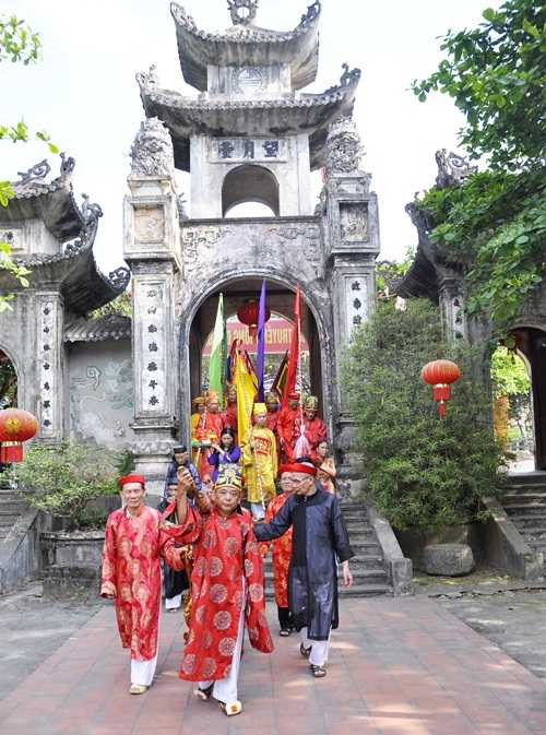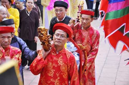 | Đoàn rước gồm nhiều thành phần, trong đó chủ yếu là các bậc cao niên, được tuyển chọn kỹ càng |