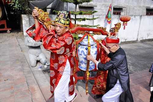 | Các cụ cao niên trong làng được lựa chọn thực hiện nghi thức rước nước |