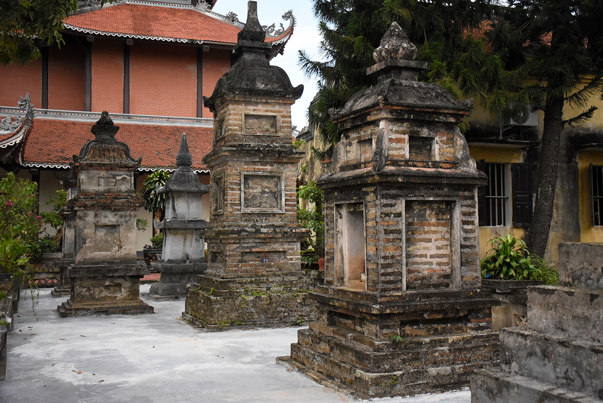 Trải qua chiến tranh tàn phá, chùa vẫn còn lưu giữ được hệ thống tháp đá thời Lê và thời Nguyễn khá đồ sộ.