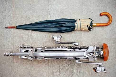 | Khi gấp lại, xe nhỏ gọn như một chiếc ô. |