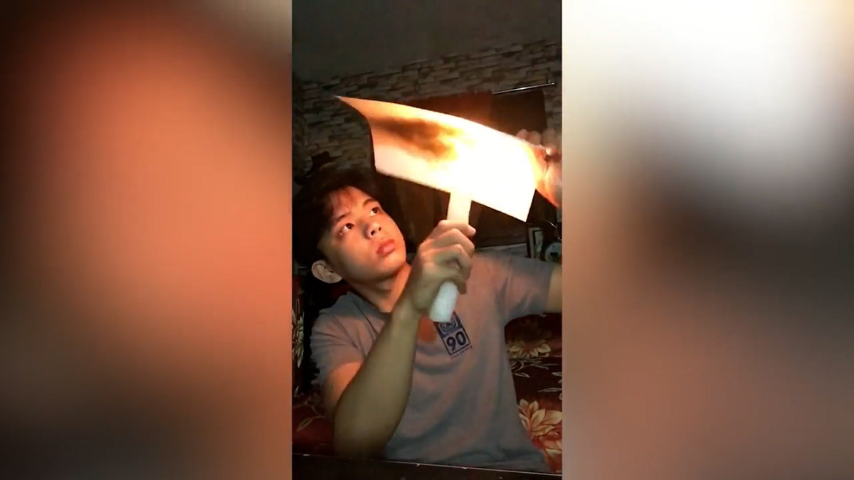 Nghệ sĩ trẻ Mejeyd Tribo (Philippines) làm đen tờ giấy bằng một ngọn nến và dùng bút để hoàn thành bức chân dung ngôi sao nhạc pop Mỹ Billie Eilish.
