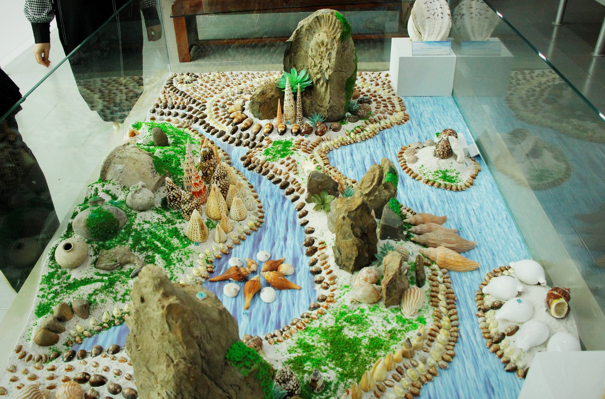 Bộ sưu tập các loài ốc biển độc đáo của ông Phan Thanh Toại được bài trí theo hình bản đồ Việt Nam tại Nhà Trưng bày Hoàng Sa, Đà Nẵng.