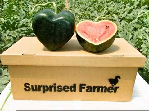 Cách đây khoảng 1 năm, loại dưa hấu hình trái tim được một lão nông người Nhật Kimura đã đổ công sức nghiên cứu cả ngày lẫn đêm. Sau ba năm nghiên cứu và thử nghiệm, những quả dưa hấu hình trái tim đầu tiên đã ra đời, chúng có giá 15.000 yen một quả.