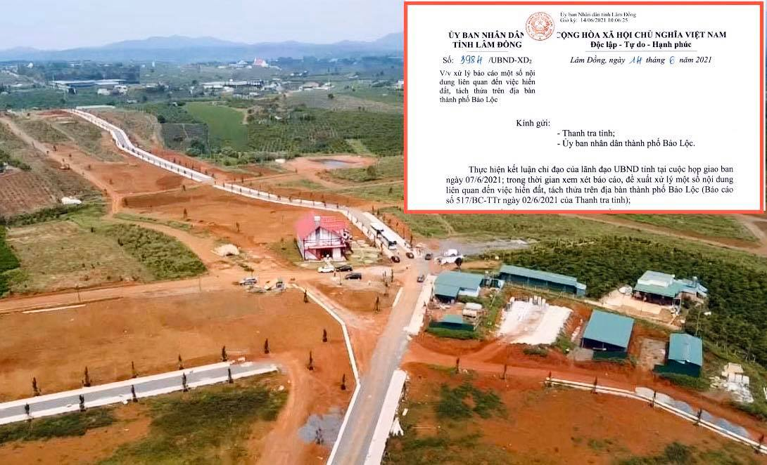 Ngày 14/6, UBND tỉnh Lâm Đồng có văn bản gửi Thanh tra tỉnh, UBND TP Bảo Lộc về việc xử lý một số nội dung liên quan đến việc hiến đất, tách thửa trên địa bàn TP Bảo Lộc.