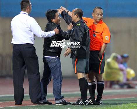 Phút 82: Trận đấu nóng hơn khi cầu thủ và Ban huấn luyện CLB HAGL phản ứng những quyết định của trọng tài chính Nguyễn Văn Kiên. Trưởng đoàn bóng đá HAGL Nguyễn Tuấn Anh vừa bị truất quyền chỉ đạo.