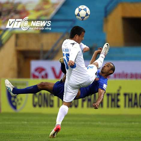 Phút 50: Hiệp 2 đã bắt đầu rất nóng. Hai đội đã liên tục có những pha tranh chấp bóng quyết liệt. Văn Pho vừa có pha chơi xấu với Gonzalo. Tiền đạo của Hà Nội T&T phải rời sân để các bác sĩ chăm sóc.